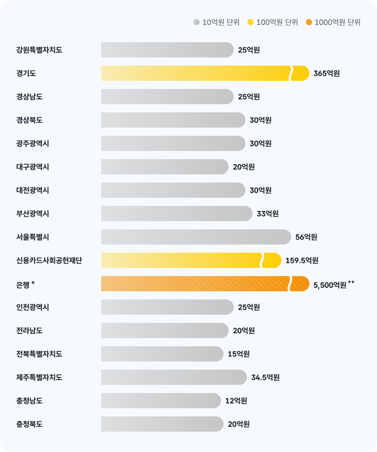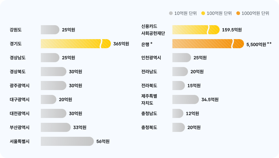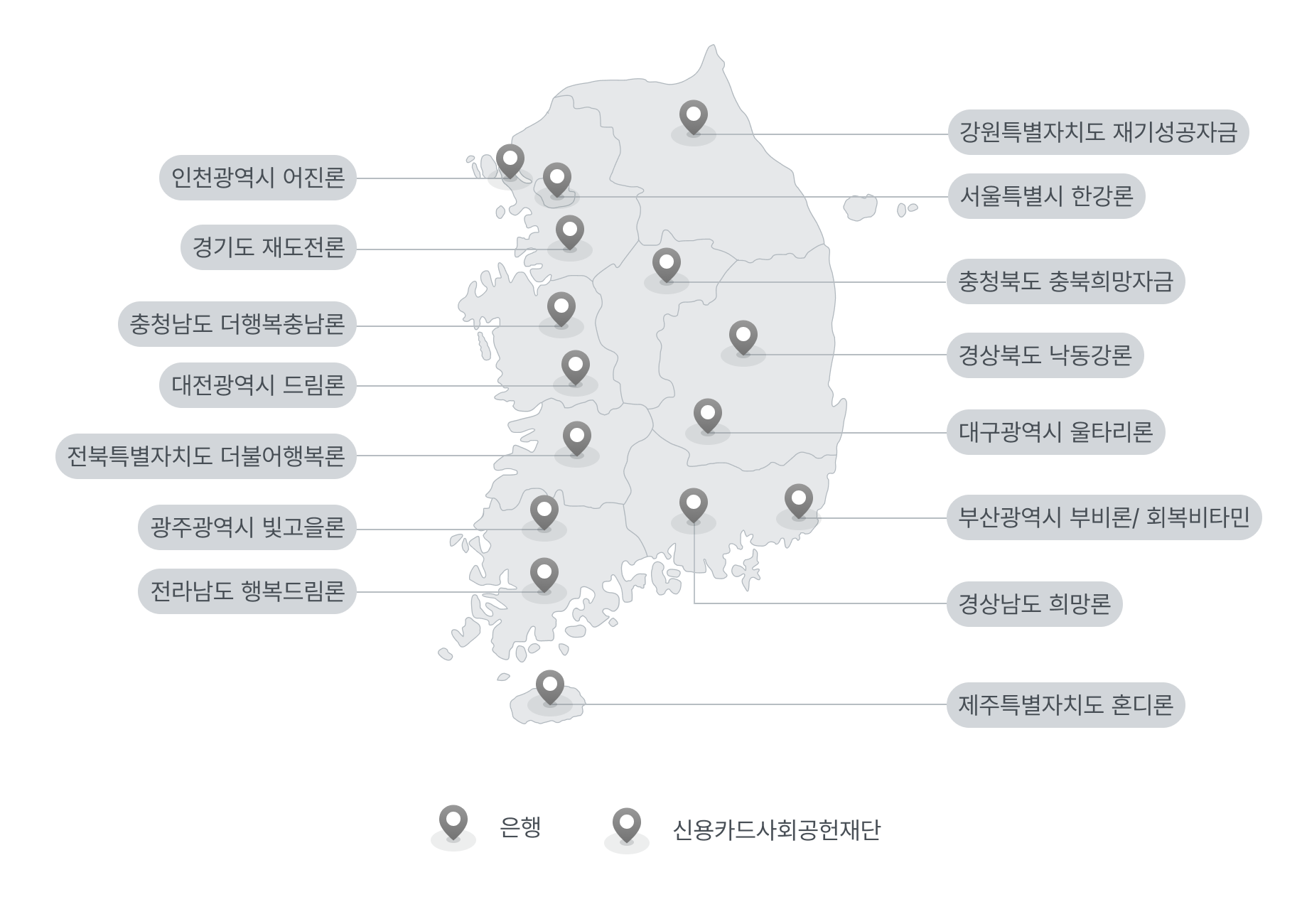 금융회사, 일반기업, 개인 및 단체 등의 기부로 이루어진 기부금과 지방자치단체 등의 차입금으로 조성되어 있습니다.